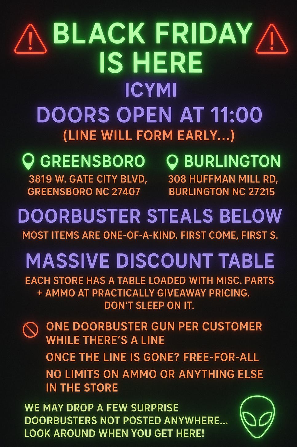 AREA 52 Gun & Pawn is a locally owned and operated Gun Shop serving the triad, with locations in Burlington and Greensboro, North Carolina.